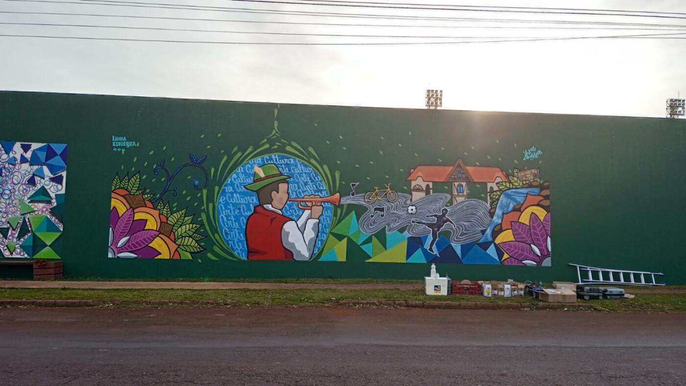 Quem circula pela Avenida Írio Jacob Welp, em Marechal Cândido Rondon, agora pode contemplar novas obras de arte no muro do Estádio Municipal Valdir Schneider.