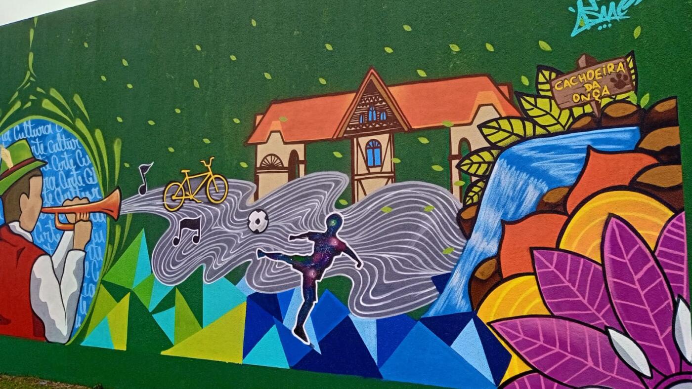 Com cores vibrantes e traços assertivos, grafite retrata elementos da cultura de Marechal Rondon, pontos turísticos rondonenses e a cultura germânica. Além disso, o esporte também é utilizado como referência na obra de arte. Confira a galeria de imagens ao fim da matéria.
