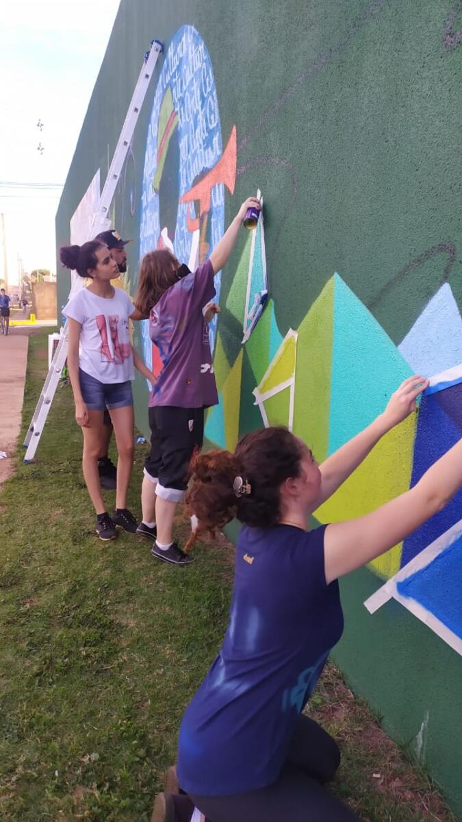 A arte que agora embeleza o muro do Estádio Municipal teve como instrutor Isaac Souza de Jesus e contou com a participação de alunos do Grêmio Estudantil do Colégio Estadual Antonio Maximiliano Ceretta, professores e alunos integrantes do Projeto de Extensão Solo na Escola, uma iniciativa do curso de Geografia da Universidade Estadual do Oeste do Paraná (Unioeste), bem como gestores de educação ambiental do Serviço Autônomo de Agua e Esgoto (Saae) e das secretarias de Educação, Agricultura e Desenvolvimento Econômico.