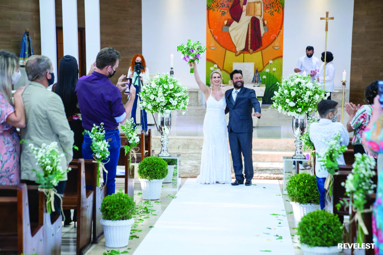 Os apaixonados marcaram a data para dia 1º de maio e não mudaram. “Foi uma cerimônia simples, com familiares e amigos próximos, tudo dentro das medidas de segurança. Para nós, o importante era a cerimônia na igreja. Se a festa fosse possível seria melhor ainda, mas não foi até o momento”, pontuam, emendando: “Que garantia temos de que vamos estar vivos amanhã? Nos unimos pensando nisso”.