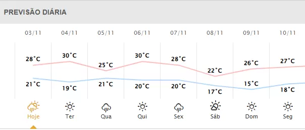 Apesar da chuva prevista para boa parte do estado, as temperaturas ficam relativamente elevadas, proporcionando condição de abafamento. Esquenta mais na faixa oeste, com valores perto dos 30°C.