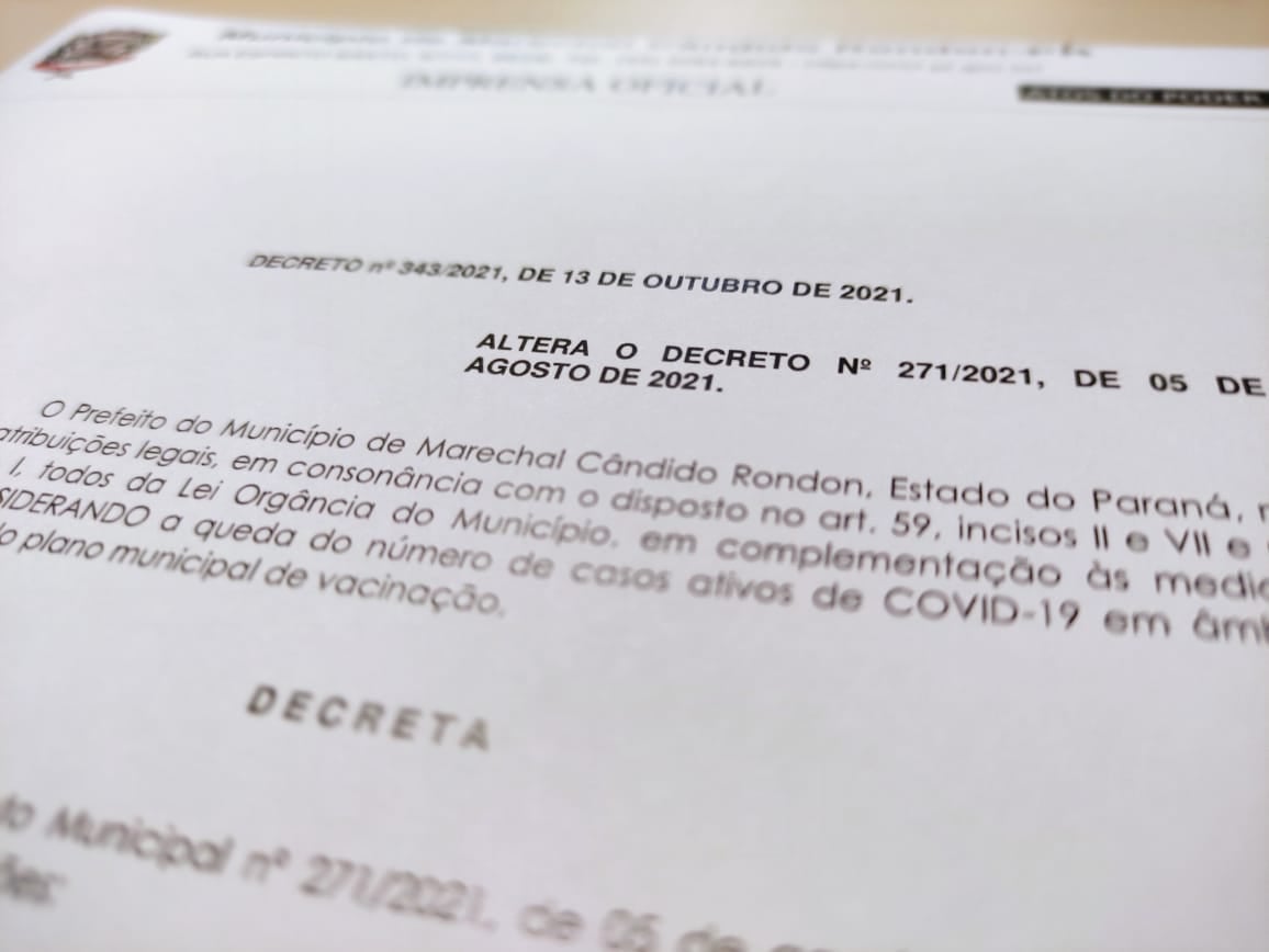 O COE (Centro de Operações de Emergência) deliberou sobre alguns assuntos em recente reunião realizada na prefeitura de Marechal Rondon. Nesta quinta-feira, dia 14, um novo decreto foi publicado no Diário Oficial Eletrônico, alterando artigos do Decreto nº 271, de 05 de agosto de 2021.