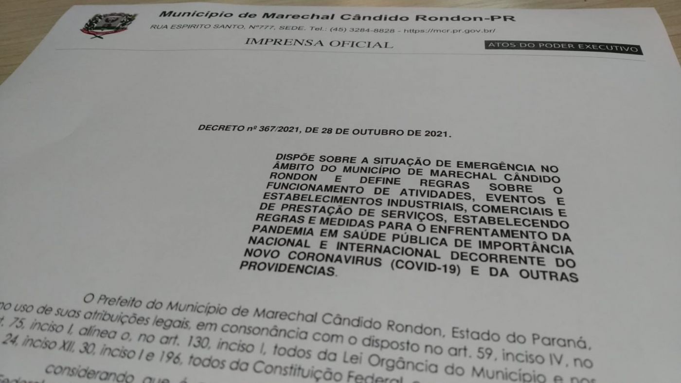 Conforme o documento, fica mantida a declaração de situação de emergência no município. Ele determina medidas a serem adotadas para limitar a transmissão humano a humano. Uso de máscara continua obrigatório.