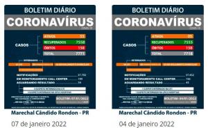 A alta dos casos ativos se deu devido à confirmação de 53 novos diagnósticos da Covid-19 em Marechal Rondon. Ao todo, o município tem 7.771 casos positivos, sendo que 7.558 pessoas já se recuperaram e 158 morreram devido a complicações da doença.