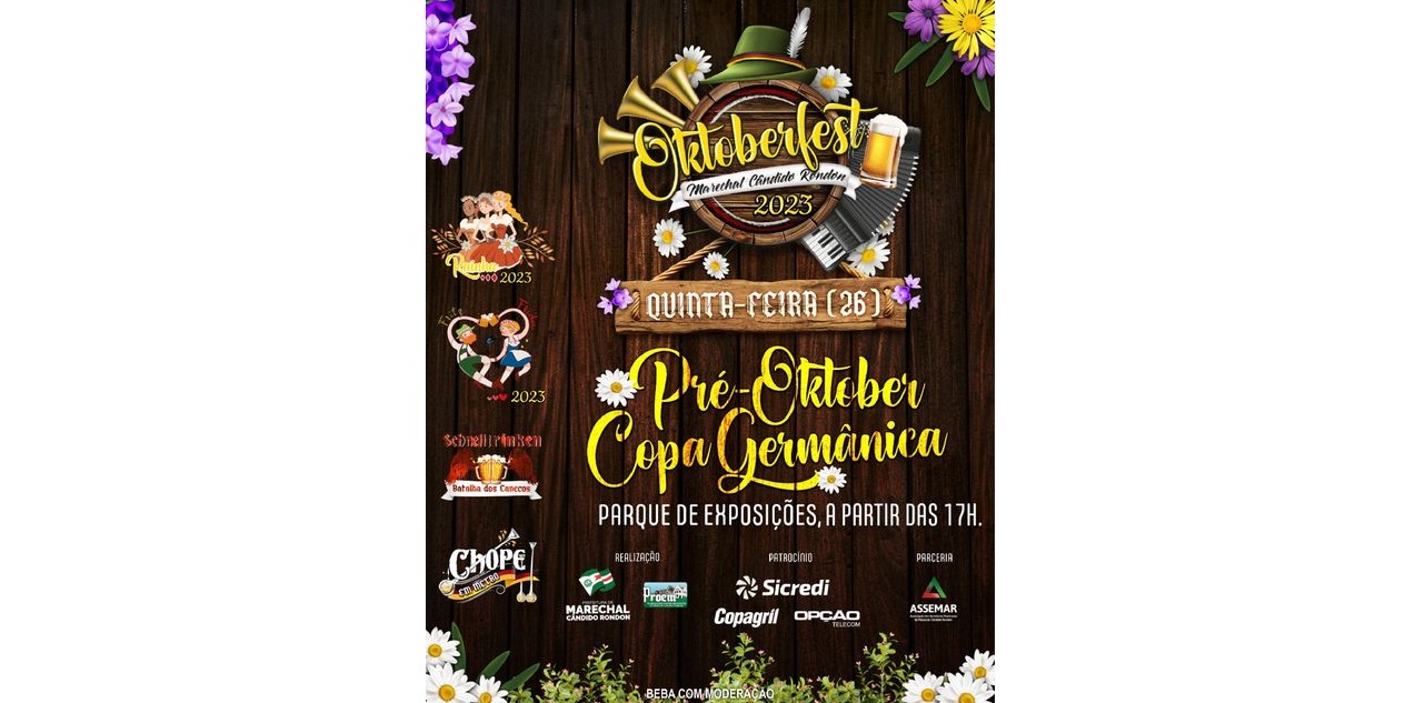 Nesta quinta-feira (26), acontecerá a última Pré-Oktoberfest de 2023. O evento será realizado na Copa Germânica, no parque de exposições, a partir das 17 horas.