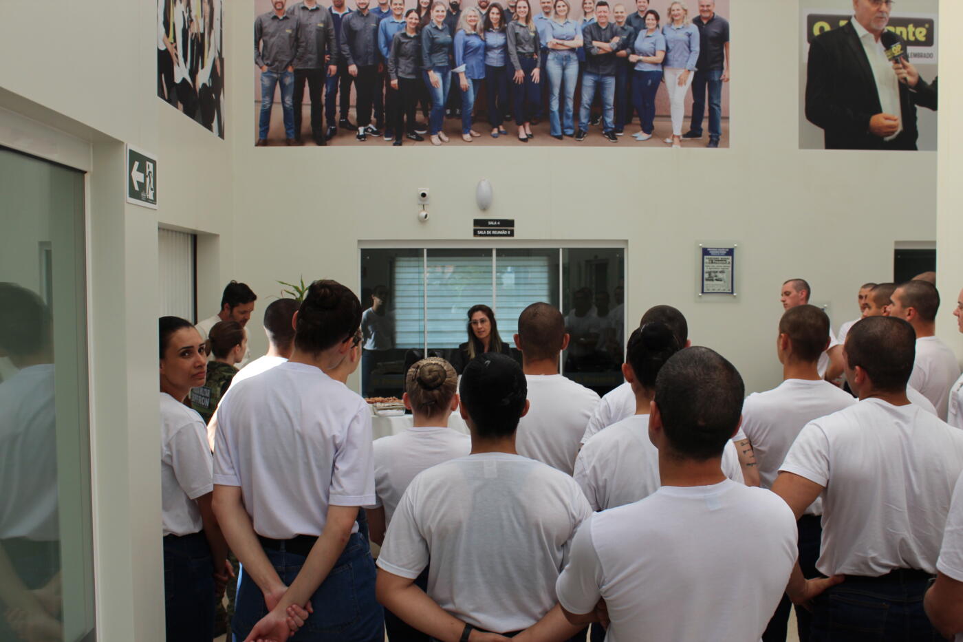 A turma do Curso de Formação de Praças da Polícia Militar – unidade do Batalhão de Polícia de Fronteira (BPFron) – visitou na tarde desta segunda-feira (29) o Jornal O Presente, que tem sede em Marechal Cândido Rondon, como atividade da disciplina de Comunicação Social, ministrada pela soldado Luana Beiger.