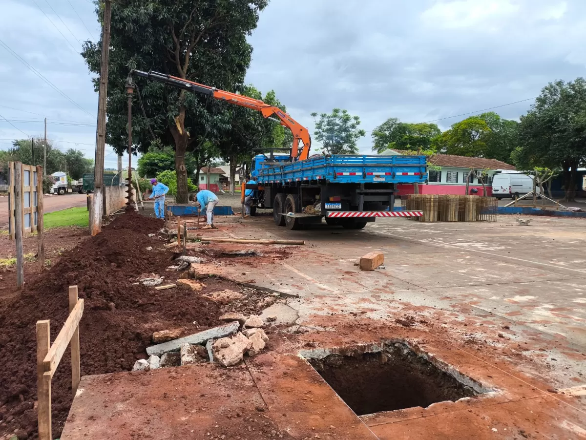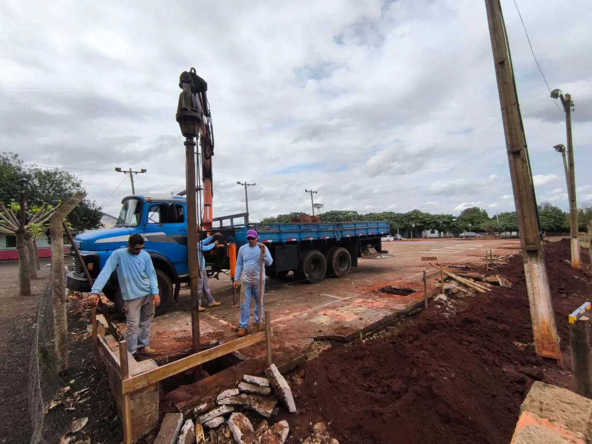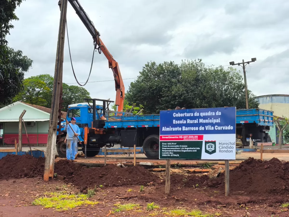 Nesta semana teve início a obra de cobertura e reforma do piso da quadra esportiva da Escola Rural Municipal Almirante Barroso, localizada em Vila Curvado, interior de Marechal Cândido Rondon.