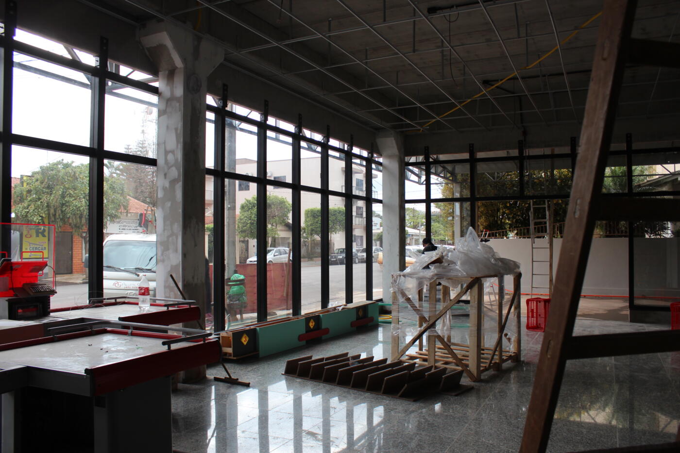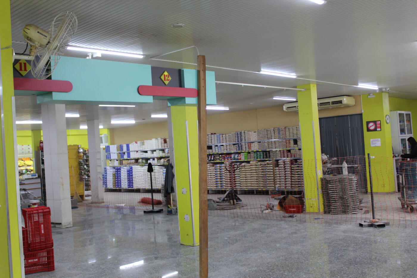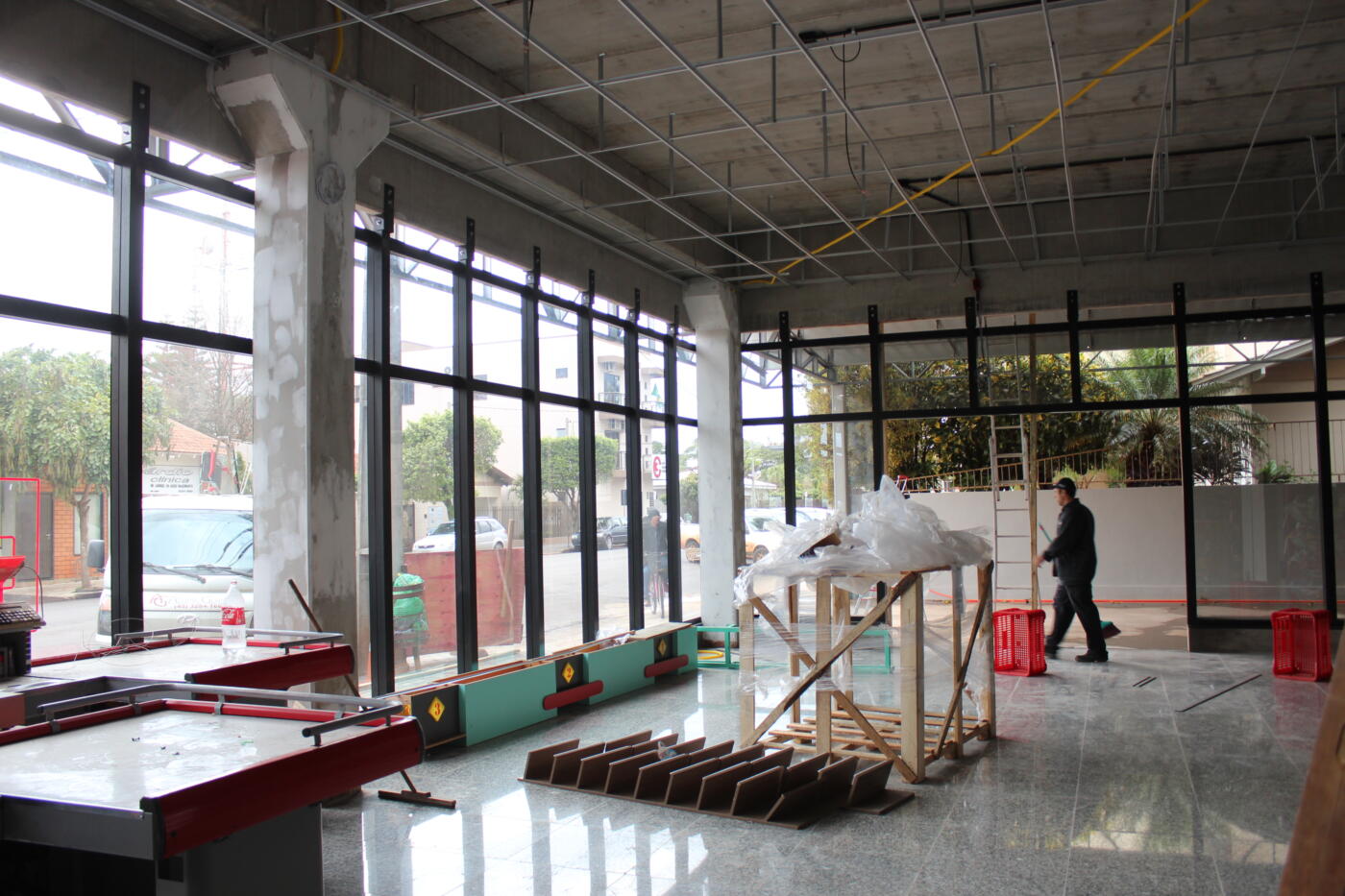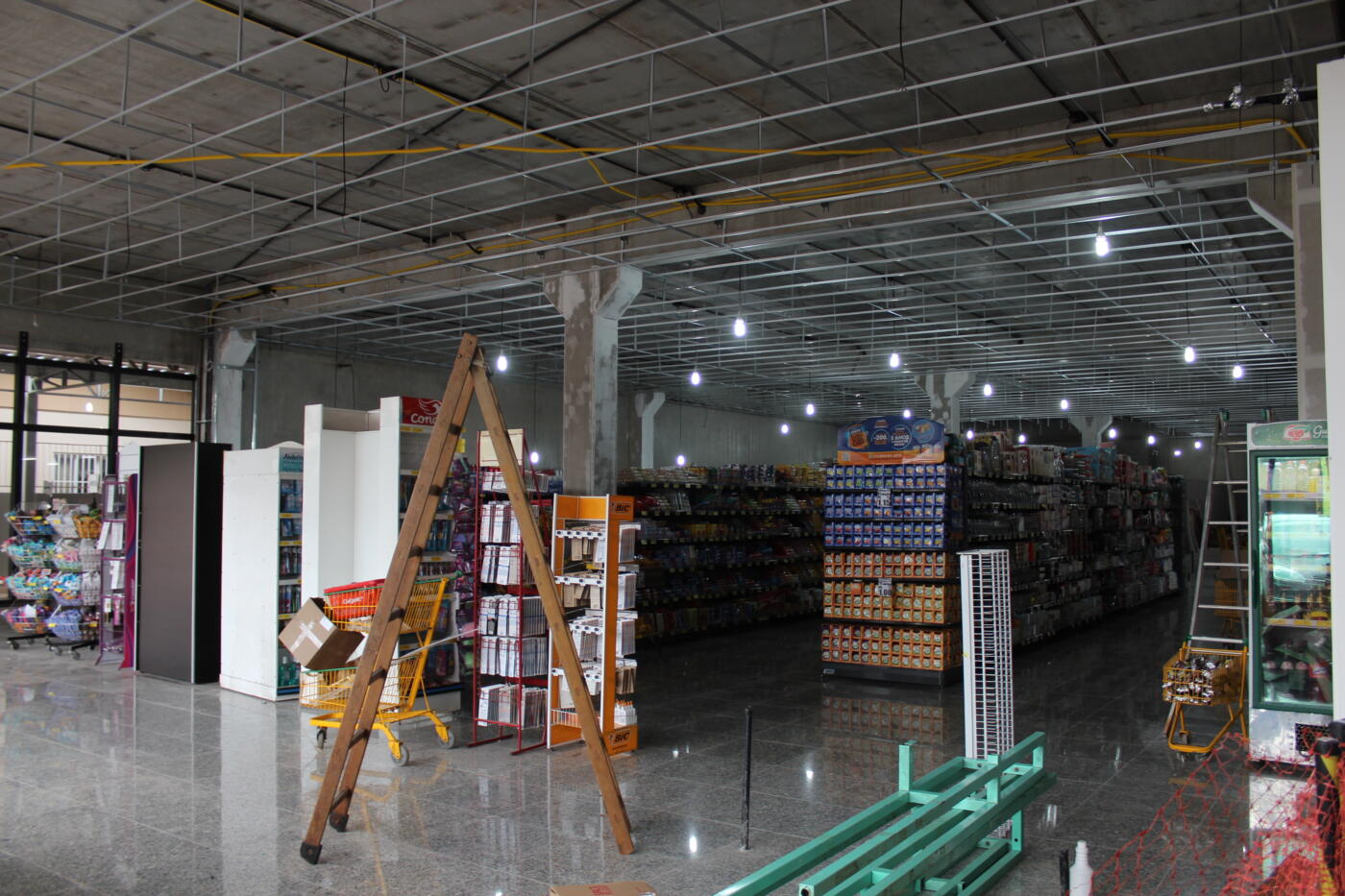 Equipamentos maiores como gôndolas, câmaras frias e sistema de refrigeração já estão todos no local e a montagem está se encaminhando dentro do esperado. Por fora, a nova fachada do mercado já está sendo feita, assim como o estacionamento – que chega a dois mil metros quadrados – está praticamente todo coberto.