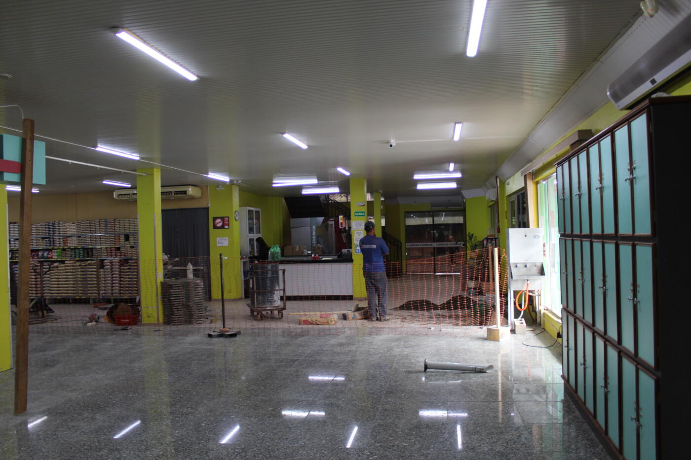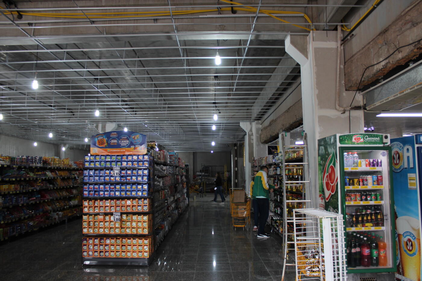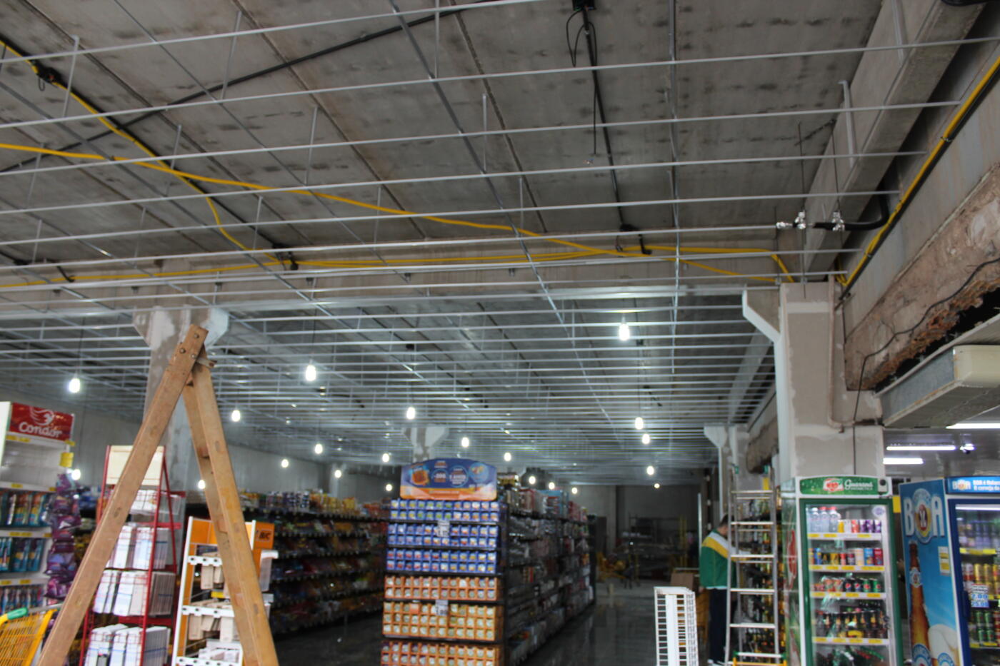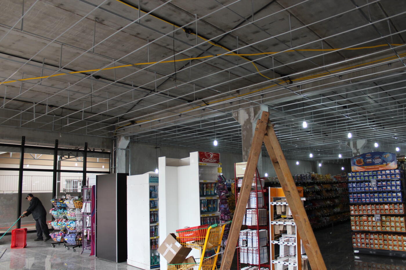 Equipamentos maiores como gôndolas, câmaras frias e sistema de refrigeração já estão todos no local e a montagem está se encaminhando dentro do esperado. Por fora, a nova fachada do mercado já está sendo feita, assim como o estacionamento – que chega a dois mil metros quadrados – está praticamente todo coberto.