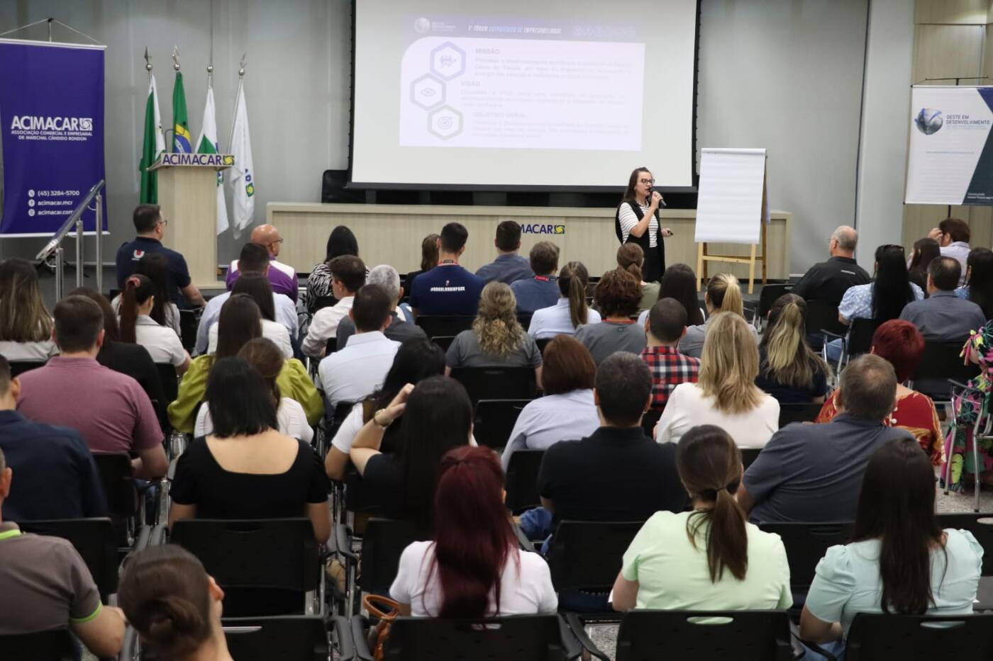 Uma dessas ações foi o workshop que aconteceu na manhã desta quinta-feira (17), que reuniu profissionais de Recursos Humanos dos mais diversos setores na Associação Comercial e Empresarial de Marechal Cândido Rondon (Acimacar). O tema foi “O Protagonismo do RH”, ministrado por Andréia Altran, especialista em gestão de pessoas e RH estratégico.