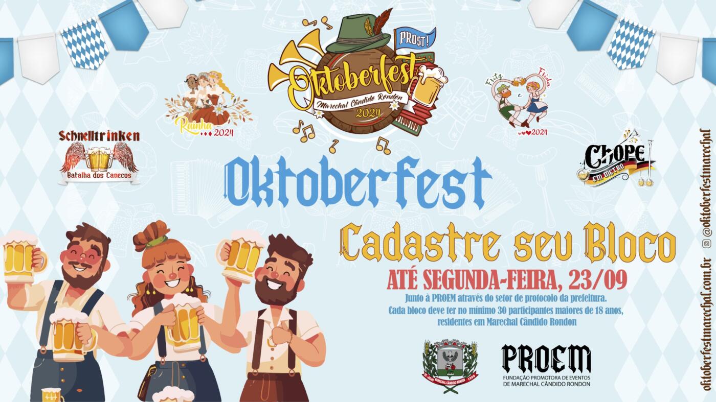 Para fins de organização da programação da Oktoberfest Marechal, anualmente a Proem faz a atualização dos blocos que participam do desfile e do “Schnelltrinken”, a batalha dos canecos. Neste ano, a primeira etapa do “Schnelltrinken” deve acontecer no lançamento da festa, marcado para o dia 28 de setembro, na Casa Cultural (com entrada gratuita). Já o desfile dos blocos será realizado no dia 26 de outubro (sábado), partindo da avenida Maripá em direção ao centro de eventos.