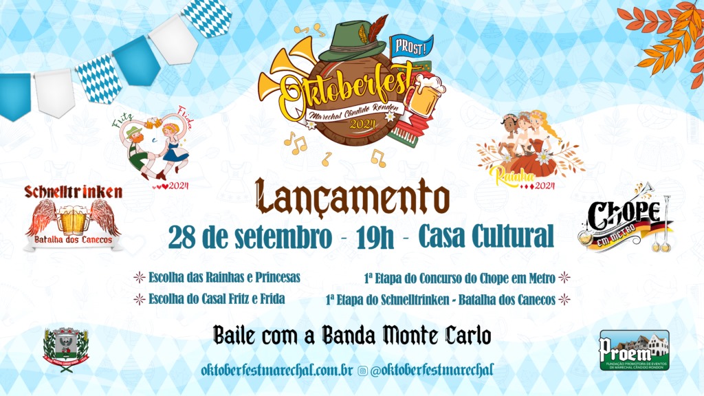 Acontece neste sábado (28), a partir das 19h30, na Casa Cultural, o lançamento das festividades que integram a Oktoberfest Marechal 2024. Organizada pela prefeitura rondonense, através da Secretaria Municipal de Cultura e da PROEM (Fundação Promotora de Eventos), a programação Oktoberfest 2024 conta com extensa agenda durante o mês de outubro.
