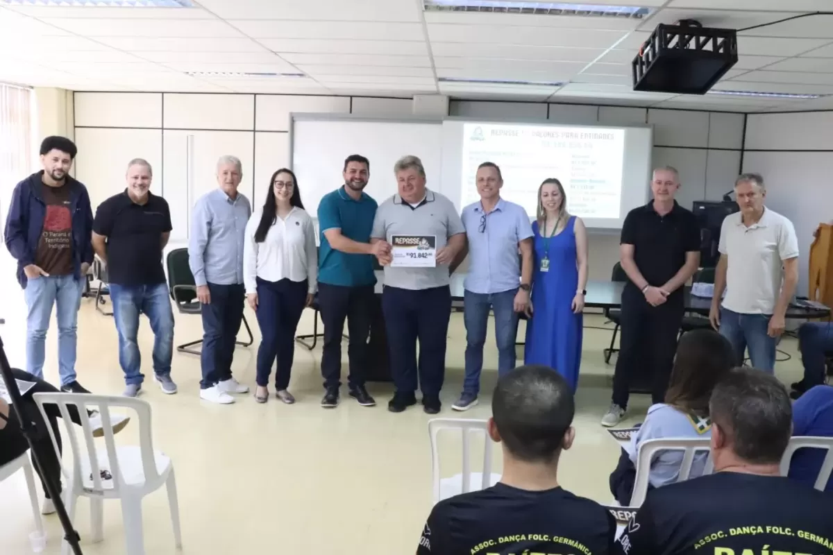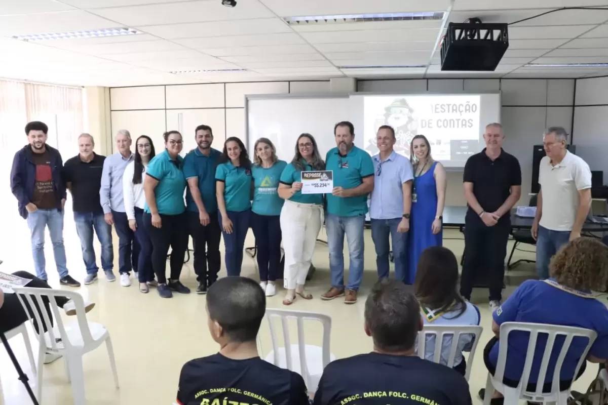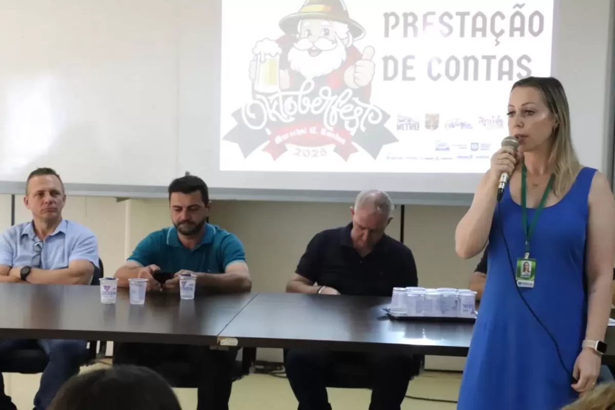 Em encontro realizado na manhã desta sexta-feira (7), no auditório da prefeitura de Marechal Cândido Rondon, foi apresentada a prestação de contas da Oktoberfest 2025 e realizado o repasse dos valores arrecadados para as entidades parceiras do evento. Ao todo, quase R$ 170 mil foram destinados às entidades do município, sendo: R$ 898 para o Grupo Escoteiro Rocha Eterna; R$ 3.094,50 para o Grupo de Amparo e Proteção Animal (GAPA); R$ 1.299 para o Lions Clube; R$ 1.790,50 para a Associação de Moradores do Jardim Primavera; R$ 2.124,50 para o Grupo Folclórico Raízes; R$ 2.022 para o Rotaract; R$ 4.031 para o Rotary; R$ 7.519 para a Assemar Runners; R$ 91.842,84 para o Núcleo de Gastronomia; e R$ 55.234,32 para a Assemar.