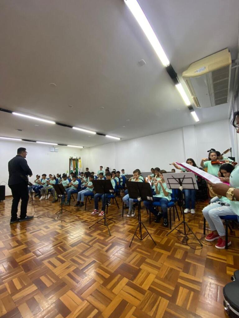 O Serviço Social do Comércio (Sesc) de Marechal Cândido Rondon, através do projeto Futuro Integral, recebeu a apresentação cultural da Orquestra Mirim Vila Guarani, na segunda-feira (13). A Orquestra Mirim Vila Guarani, de Terra Roxa, foi fundada em agosto de 2022.