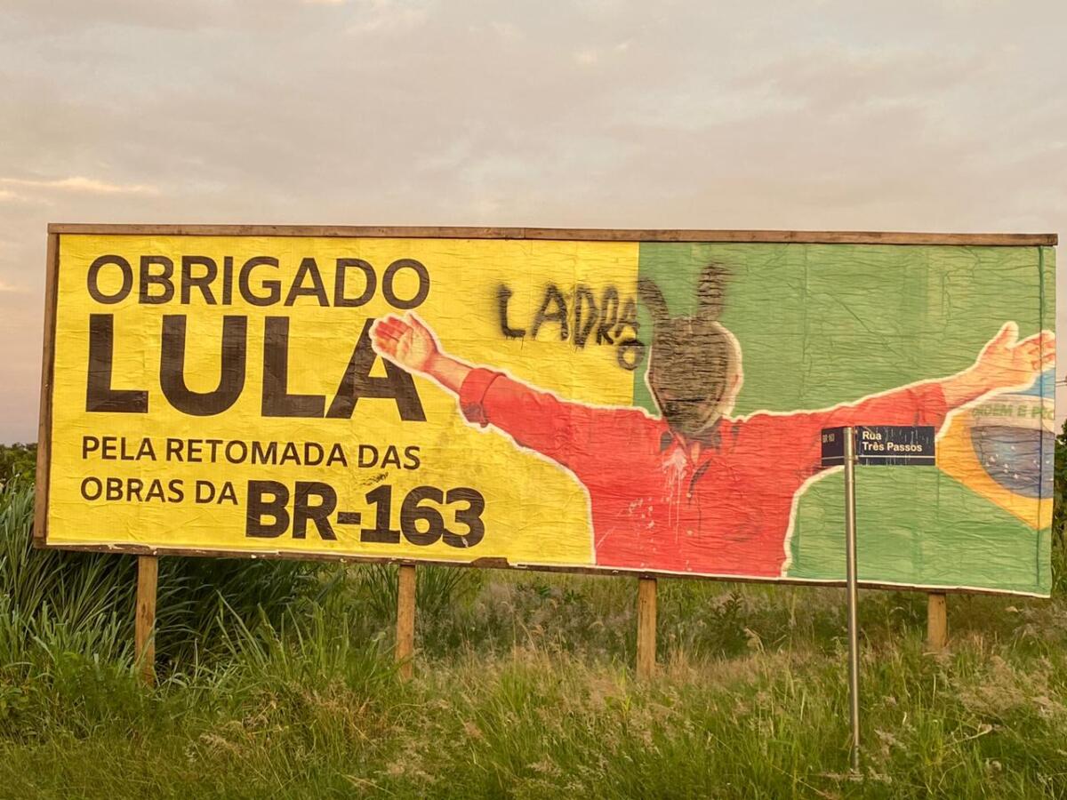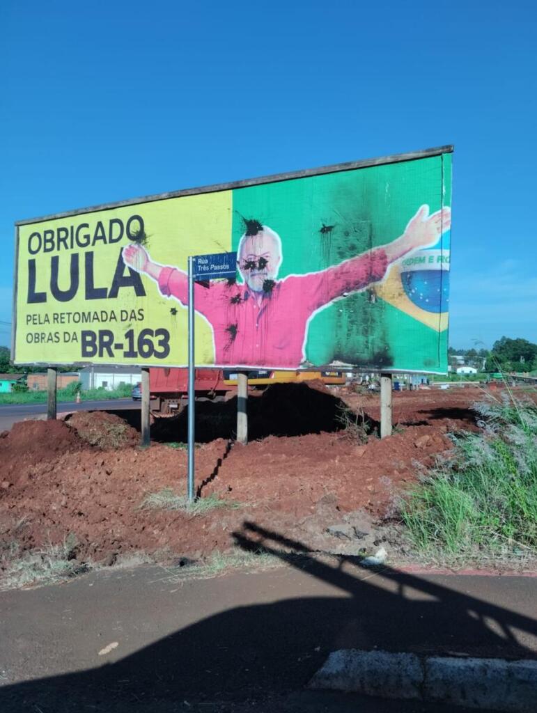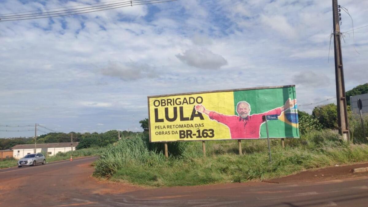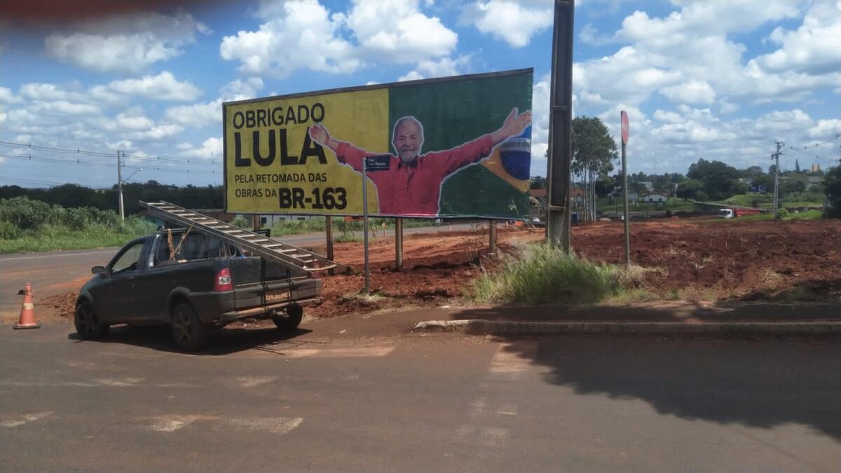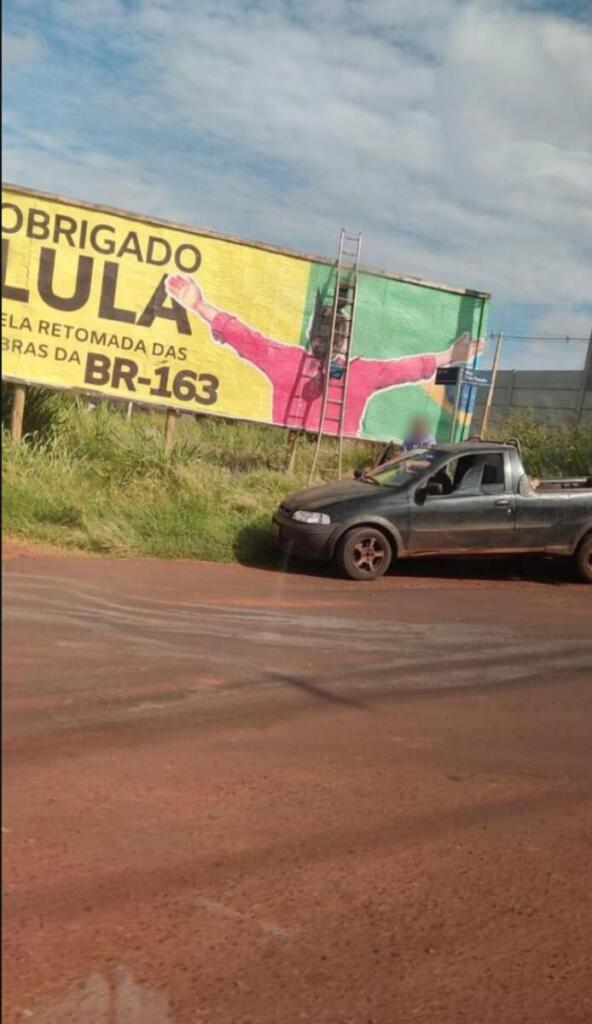 O outdoor com mensagem ao presidente Lula, em agradecimento pela retomada das obras da BR-163, instalado nas proximidades do portal de Marechal Cândido Rondon, segue dando o que falar.