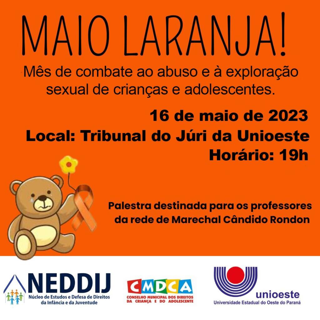 Evento intitulado “O Atendimento às crianças e aos adolescentes em situação de violência: estratégias, indícios e consequências”, está agendado para terça-feira (16), às 19 horas, tendo por local o Tribunal do Júri do campus da Unioeste em Marechal Cândido Rondon.