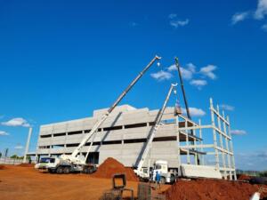 De acordo com Adriano Wutke, engenheiro responsável da Engemarko – empresa que está cuidando da estrutura da obra -, as fundações do hospital estão concluídas em sua totalidade. Já com relação à montagem, cerca de 80% do projeto foi executado. “As regiões do ambulatório, recepção e salas de cirurgia está estão concluídos. Os trabalhos estão direcionados para a parte dos fundos, onde estão localizados o refeitório no subsolo e leitos nos demais pavimentos. O trabalho só não está mais adiantado devido às chuvas no começo do mês de junho, o que acarretou em uma redução no ritmo, fazendo com que a montagem deva ser concluída até o dia 10 de julho”, explica.