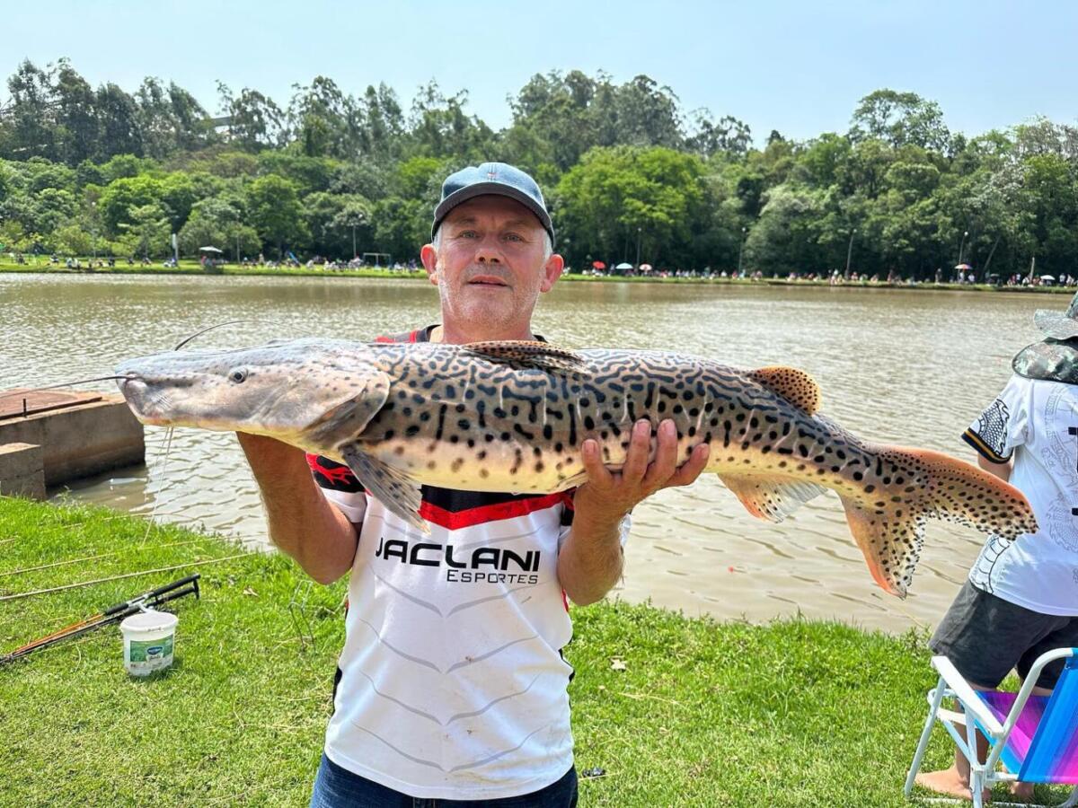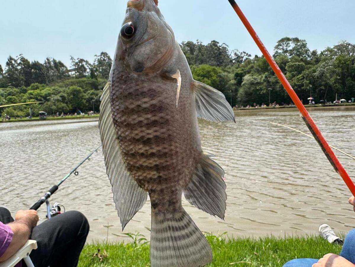 Os participantes se inscreveram antecipadamente, mediante a doação de um quilo de alimento. Apesar de ninguém ter fisgado um exemplar de 50 quilos, muito peixe já saiu do lago.