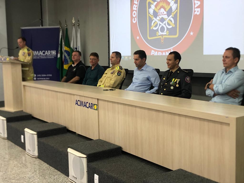 Dezenas de pessoas prestigiaram, na quinta-feira (13), no auditório da Associação Comercial e Empresarial de Marechal Cândido Rondon (Acimacar), a solenidade de passagem de comando do Quartel do Subgrupamento do Corpo de Bombeiros de Marechal Rondon.