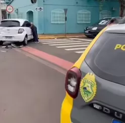 A colisão envolveu dois carros, o condutor do carro com placas do Paraguai cortou a preferencial da condutora do veículo Agile, que seria funcionária de uma farmácia aqui do município.