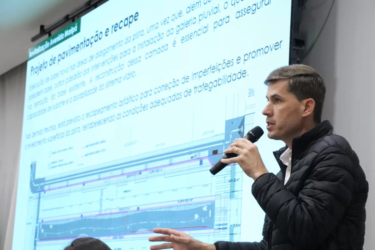 O encontro foi promovido pela Secretaria Municipal de Planejamento, comandada por Anderson Bento Maria, que, inicialmente, apresentou a equipe técnica responsável pela elaboração dos projetos. Em seguida, as plantas foram expostas em detalhes, incluindo a reestruturação viária e as propostas de paisagismo e arborização. Um dos pontos abordados foi a necessidade de retirada de árvores antigas, respaldada por laudos técnicos que apontam risco ou comprometimento dessas espécies. A proposta também prevê o plantio de novas árvores ao longo do trecho.