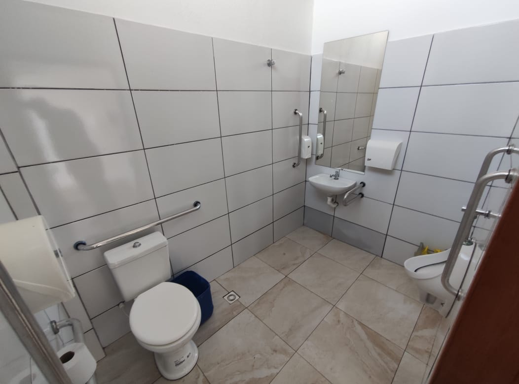 Todos os banheiros fixos, como os instalados no centro de eventos, Casa Cultural e os espalhados pelo parque, possuem um espaço adaptado para os PNEs. Além destes, haverá banheiros químicos distribuídos pelo parque de exposições, como no pavilhão do agronegócio e ao lado da Casa Cultural, que também são pensados exclusivamente para esse público.