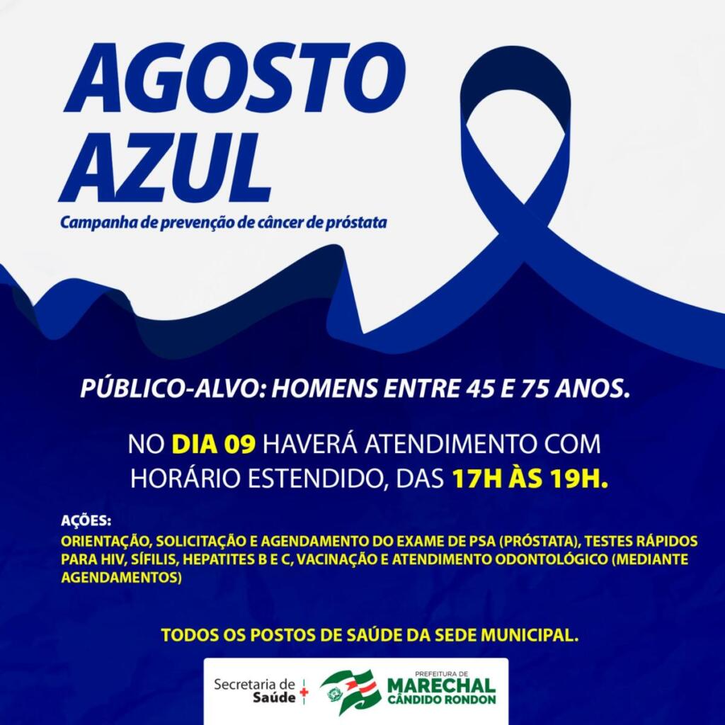 Promovida em âmbito municipal pela Secretaria de Saúde, a iniciativa tem como público-alvo os homens com idade entre 45 e 75 anos de idade. A Campanha Agosto Azul tem foco na prevenção do câncer de próstata.