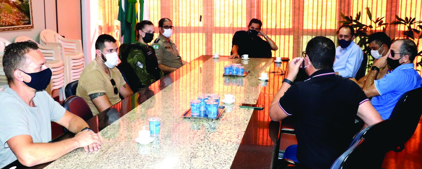 Foi realizado ontem (08), na Prefeitura de Marechal Cândido Rondon, encontro para apresentar ao prefeito Marcio Rauber um projeto de monitoramento com câmeras no município. Estiveram presentes o presidente da Acimacar, Ricardo Leites de Oliveira, representantes das polícias Civil, Militar e Batalhão de Polícia de Fronteira (BPFron), Corpo de Bombeiros, secretário de Mobilidade Urbana, coronel Welyngton Alves da Rosa, e o vereador Vanderlei Sauer.