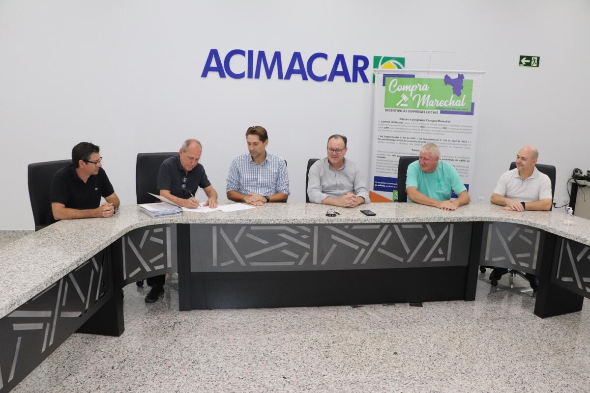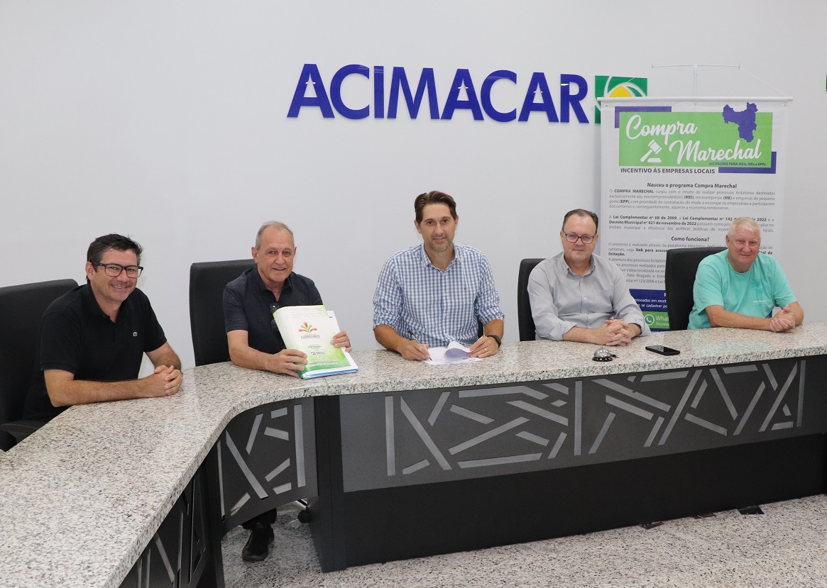 Durante encontro realizado na manhã desta quinta-feira (16), a prefeitura de Marechal Cândido Rondon, por meio da Secretaria Municipal de Desenvolvimento Econômico, e a Associação Comercial e Empresarial (Acimacar), formalizaram uma importante parceria no âmbito do projeto Compras Marechal.