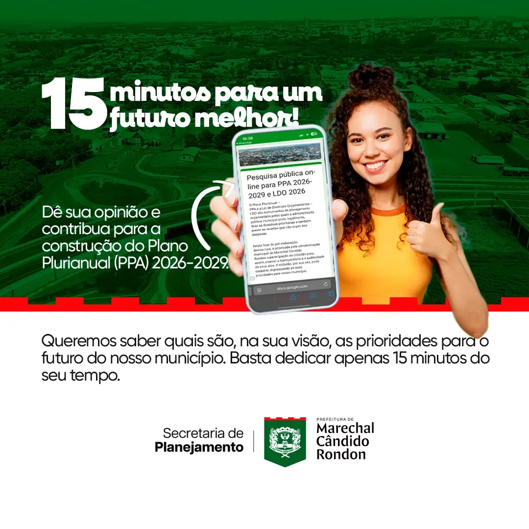 A prefeitura de Marechal Cândido Rondon, por meio da Secretaria de Planejamento, está elaborando o Plano Plurianual (PPA) 2026-2029 e, para isso, contam com a participação da comunidade.