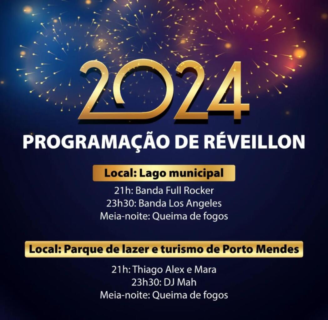 Já no parque de lazer e turismo de Porto Mendes, que deverá receber centenas de veranistas, às 21h estarão se apresentando Thiago Alex e Mara e às 23h30, DJ Mah. Na virada de ano também haverá queima de fogos.