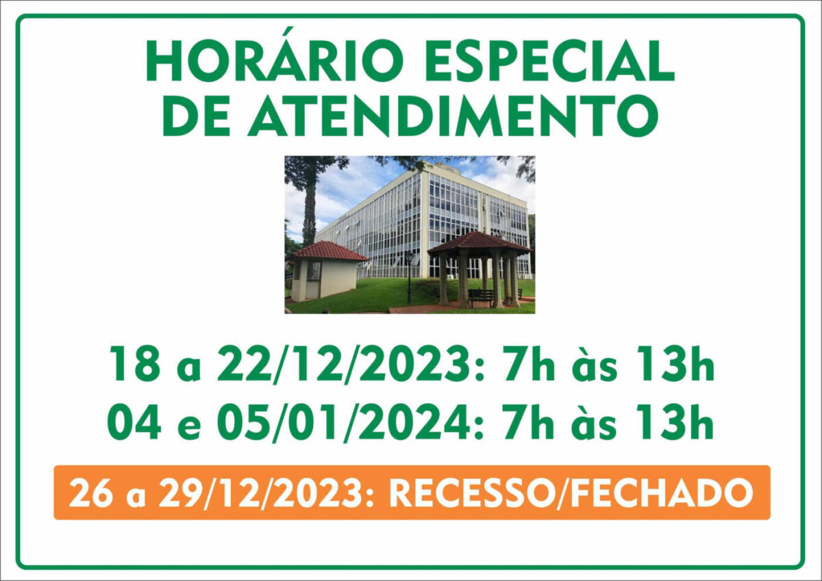 Na próxima semana, de 18 a 22 de dezembro, o expediente será das 7 às 13 horas.