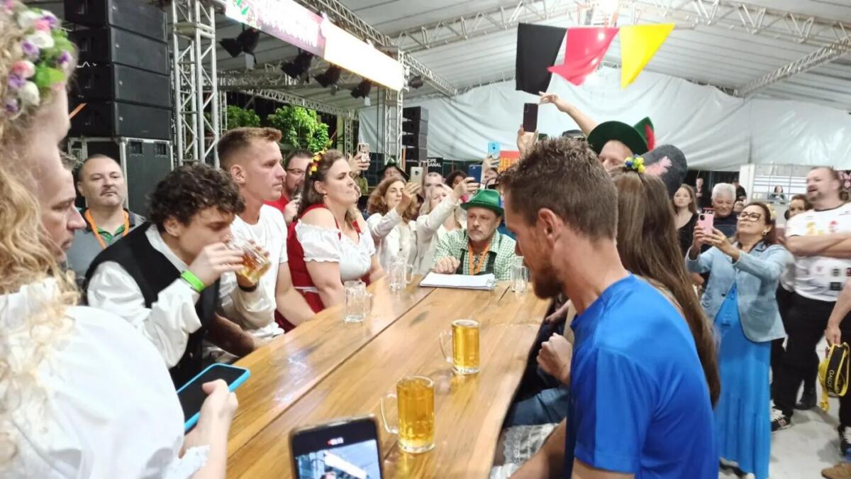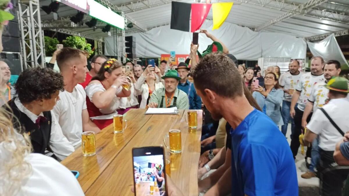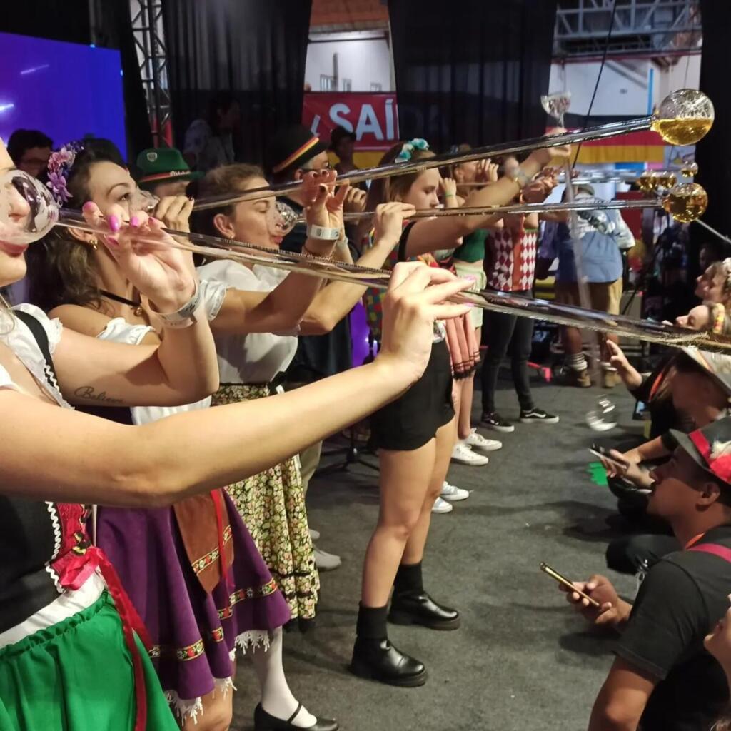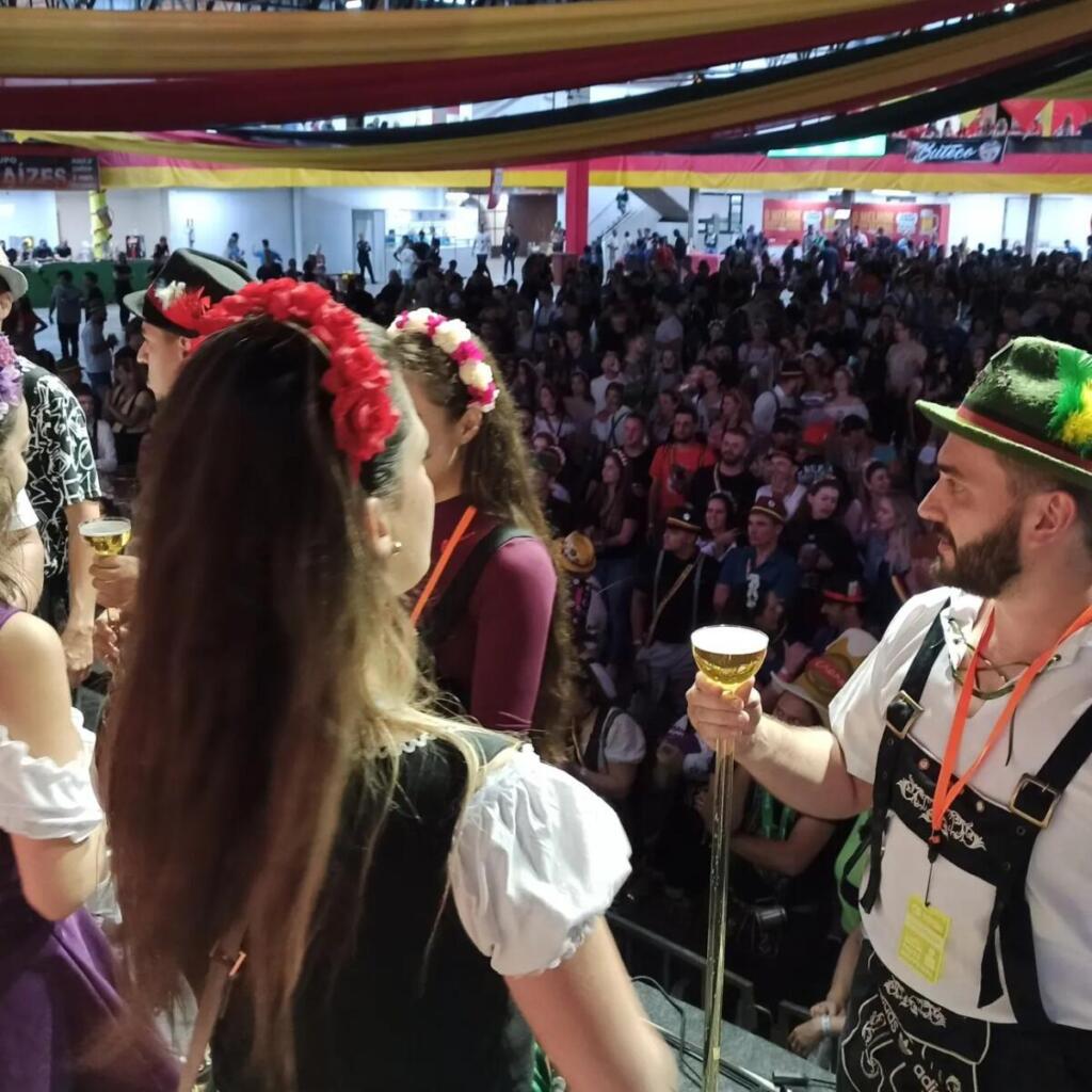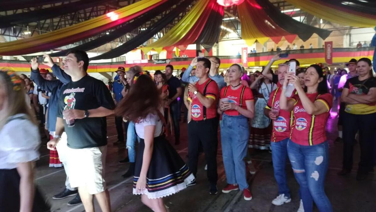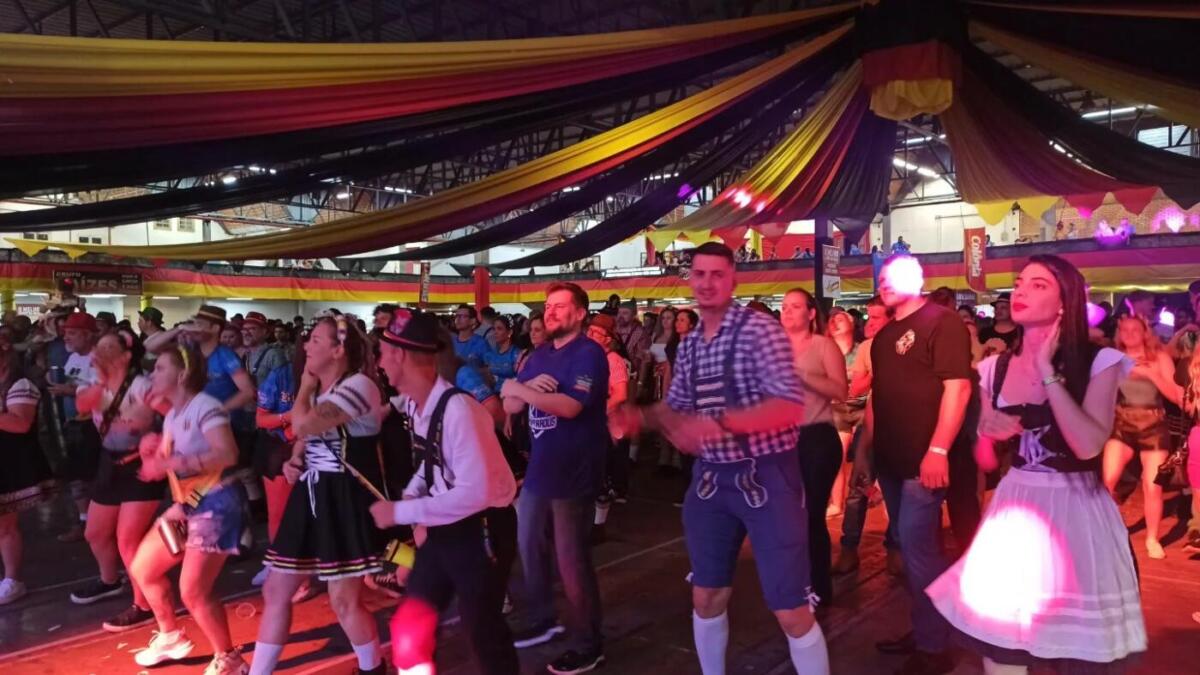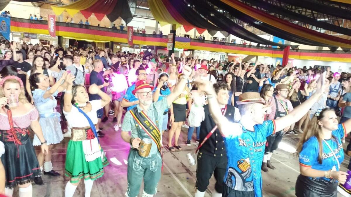 Com concurso de chopp em metro, batalha dos canecos e apresentações das bandas Madame Frau, Cavalinho e Los Angeles, a festança repleta de marchinhas alemãs seguiu até madrugada adentro. Veja fotos: