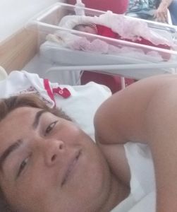 Simone e a filha Antonely Gabriely, no Hospital Municipal Dr. Cruzatti (Foto: Divulgação)