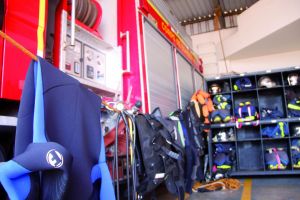 Equipamentos utilizados pelo Corpo de Bombeiros para resgatar vítima fatal de afogamento no Lago Municipal (Foto: Sandro Mesquita/OP)
