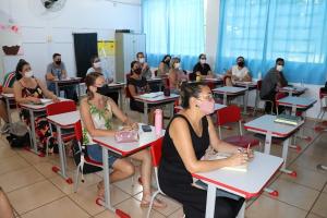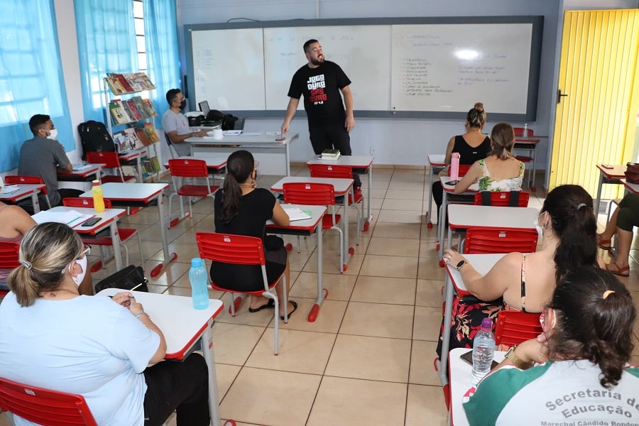 Os professores das instituições da rede municipal de ensino de Marechal Cândido Rondon passam por uma capacitação sobre o uso das principais ferramentas disponibilizadas nas lousas digitais. O treinamento iniciado nesta tarde de segunda-feira (14) prossegue até sexta-feira (18), tendo um cronograma de data, horário e local para cada escola municipal.