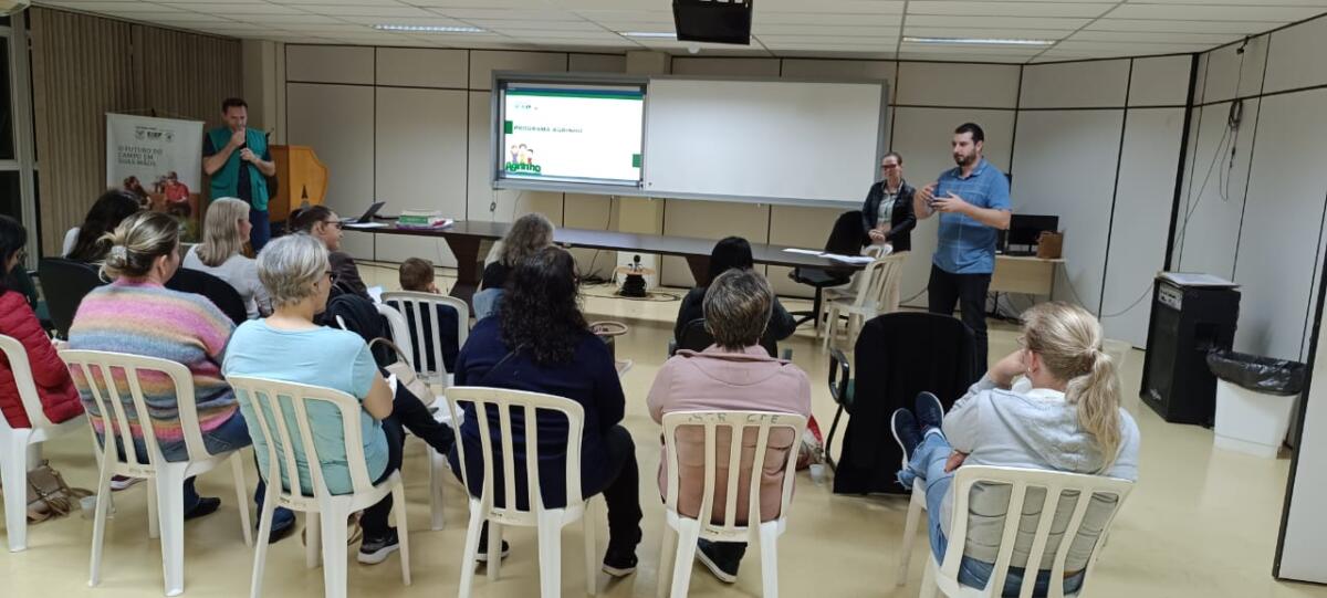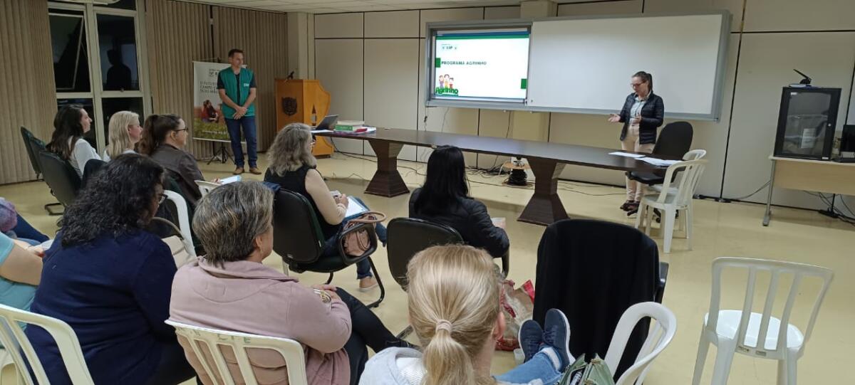 Professores da rede municipal de ensino de Marechal Cândido Rondon receberam capacitação do Programa Agrinho, na noite de segunda-feira (20), no auditório da prefeitura. O programa é desenvolvido pelo Serviço Nacional de Aprendizagem Rural (Senar), pertencente a Federação da Agricultura do Estado do Paraná (Faep). O instrutor foi Solivan Rosanelli, da cidade de Toledo. Também esteve presente o secretário de Educação, Fernando Volpato.