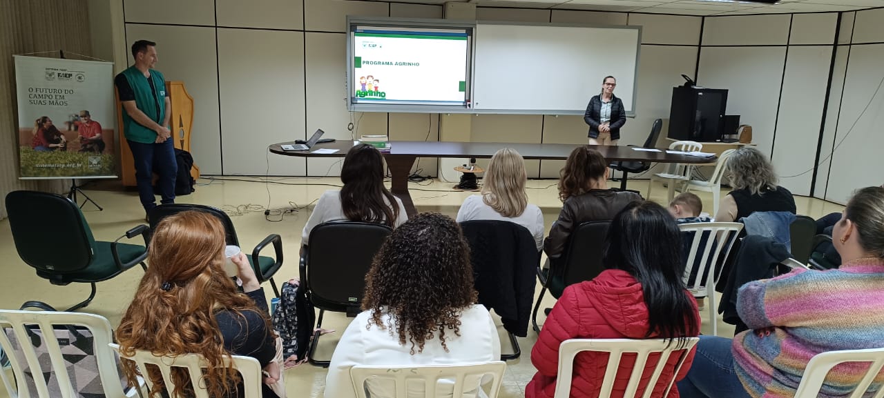 Professores da rede municipal de ensino de Marechal Cândido Rondon receberam capacitação do Programa Agrinho, na noite de segunda-feira (20), no auditório da prefeitura. O programa é desenvolvido pelo Serviço Nacional de Aprendizagem Rural (Senar), pertencente a Federação da Agricultura do Estado do Paraná (Faep). O instrutor foi Solivan Rosanelli, da cidade de Toledo. Também esteve presente o secretário de Educação, Fernando Volpato.