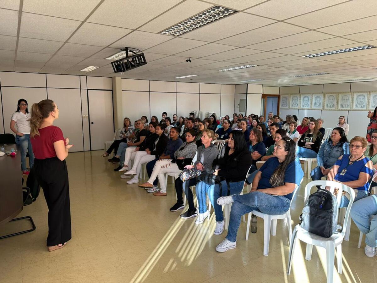 Agentes comunitários de saúde, enfermeiros, técnicos de enfermagem, nutricionista e assistente social participam, na manhã desta quinta-feira (17), de uma atividade relativa à campanha Agosto Dourado. Os trabalhos ocorrem no auditório da prefeitura de Marechal Cândido Rondon, através de uma iniciativa da Secretaria Municipal de Saúde.