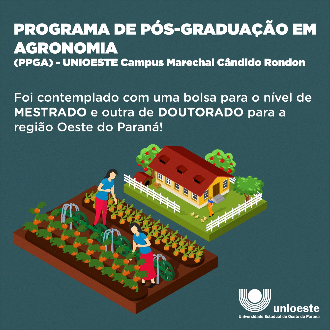 O Programa de Pós-graduação em Agronomia (PPGA) da Universidade Estadual do Oeste do Paraná (Unioeste), campus de Marechal Cândido Rondon, foi contemplado com uma bolsa para o nível de mestrado e outra de doutorado por meio da Chamada CNPq Nº 25/2020.