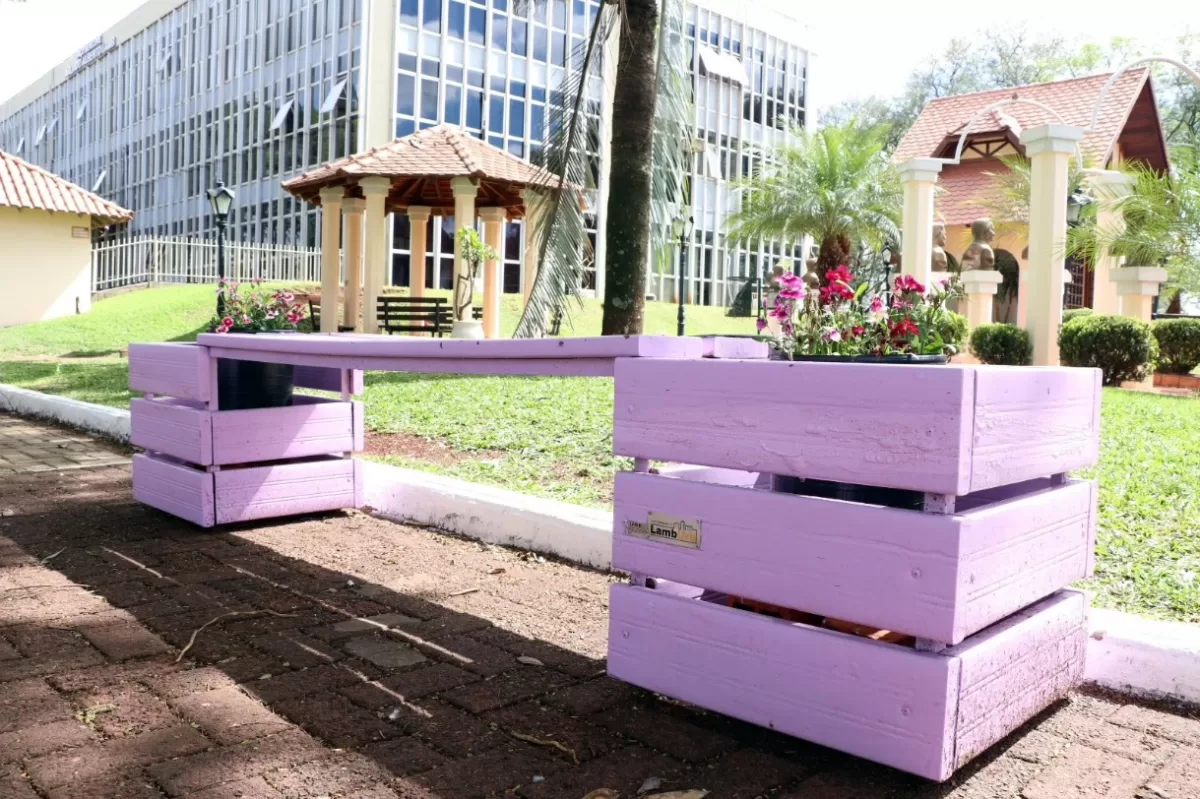 Como forma de simbolizar e dar visibilidade à iniciativa, bancos pintados com as cores da campanha foram instalados em espaços públicos do município, reforçando a mensagem de conscientização e o compromisso de proximidade com a comunidade.