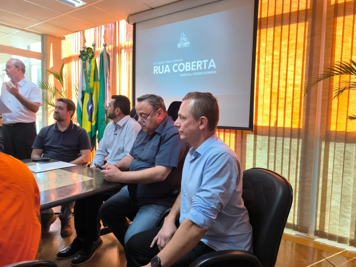 Na manhã desta quinta-feira (14), na sala de reuniões do gabinete, na prefeitura, foi apresentada oficialmente a proposta da Rua Coberta, que será construída no centro da Praça Willy Barth, em Marechal Cândido Rondon.