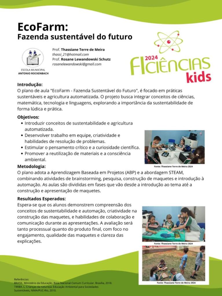 Um trabalho desenvolvido por alunos do contraturno escolar e do 3º ano da Escola Municipal Antonio Rockenbach, de Marechal Cândido Rondon, orientados pelas professoras Thassiane Terre de Meira e Rosane Lewandowski, foi selecionado para representar o município no FIciências Kids, evento internacional da Itaipu, realizado no último dia 28 de novembro, em Foz do Iguaçu.