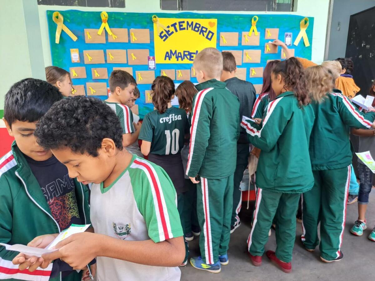“Iniciamos a mobilização dos alunos e professores na penúltima semana de agosto. Os painéis ficarão expostos nas escolas e na prefeitura durante todo o mês de setembro. Além da conscientização e da sensibilização, nosso objetivo é de que através dessas mensagens possamos tocar a vida de outras pessoas com muito carinho e cuidado. Algo muito bacana que foi trabalhado com os cerca de 550 alunos se refere à importância de vivermos o ‘Setembro Amarelo’ diariamente, pois a vida acontece todos os dias”, frisa Raquel.