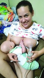 Mamãe Estela Aparecida da Silva amamentando o filho: “Representar o Projeto Nutriz está sendo maravilhoso. Ele trouxe para mim mais amadurecimento. O pouco que doamos é muito para muitas crianças. É gratificante saber que o meu filho está sendo privilegiado por poder estar em casa e eu podendo alimentá-lo. Estou me sentindo especial em ajudar outras mães com seus filhos que estão em hospitais internados em UTI”.