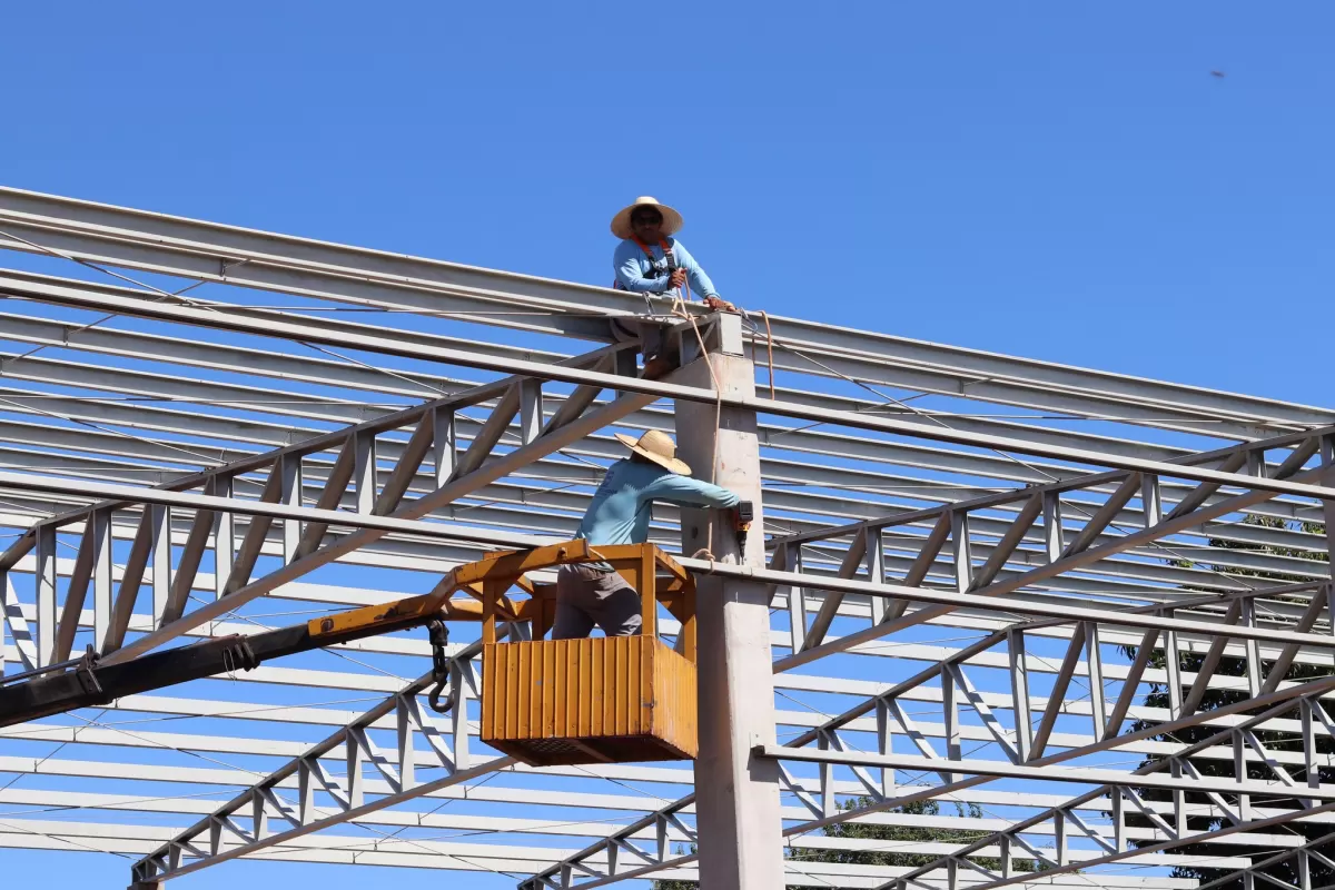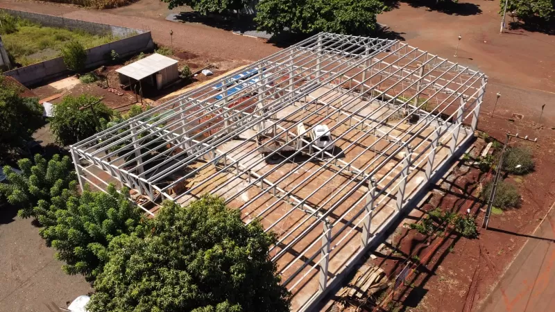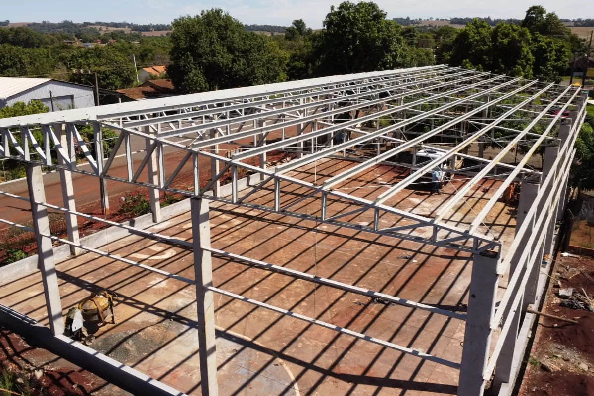 Mais uma etapa da obra na quadra esportiva da Escola Rural Municipal Almirante Barroso, localizada em Vila Curvado, interior de Marechal Cândido Rondon, teve início nesta semana. Nesta fase, está sendo executada a colocação do telhado. Após isso, deverá ser feita a reforma do piso da quadra.