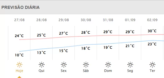 Confira as temperaturas dos próximos dias em Marechal Rondon, segundo o Simepar