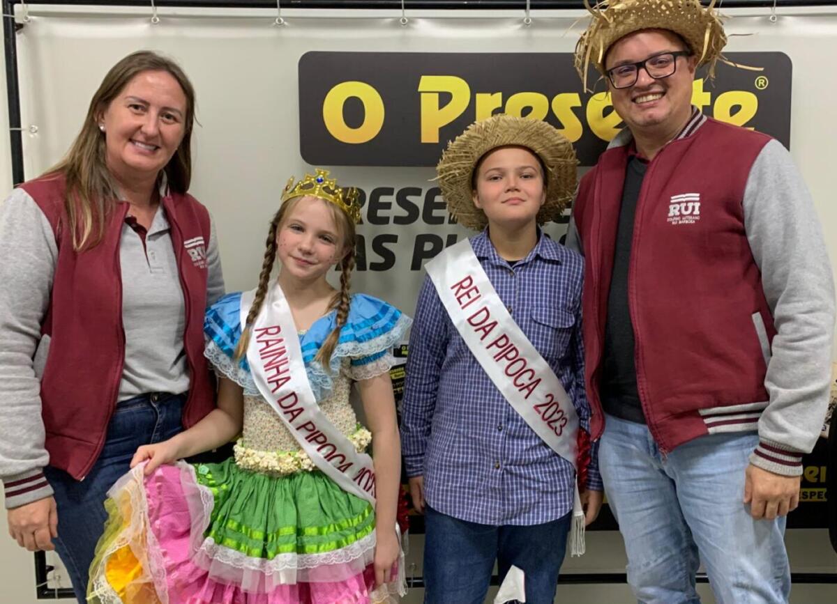 O Rei e a Rainha da Pipoca representam o colégio durante a divulgação do evento. A coordenadora pedagógica do Colégio Rui Barbosa, Vanessa Cristina Mittelstet, contou que houve eleição para os reis da pipoca com o objetivo de ensinar sobre a democracia para as crianças. “Eles foram eleitos por meio de votação, com cédulas e urna, para representarem o colégio durante a divulgação do evento. Teve um desfile individual de meninos e meninas, com alunos do Pré I ao 5º ano, que concorreram para Rei e Rainha da Pipoca, onde poderiam ser eleitos representantes de séries diferentes. A votação teve como objetivo ensinar aos alunos sobre civismo, democracia e como funciona a votação dos adultos nas eleições”, afirma.