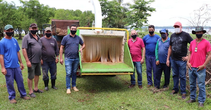 Autoridades municipais e servidores do Parque de Lazer Annita Wanderer, no distrito de Porto Mendes, prestigiaram, na manhã desta quinta-feira (11), a entrega técnica de um triturador de galhos. O equipamento será utilizado no parque de lazer para eliminar galhos que caem constantemente das árvores situadas na parte interna da prainha.