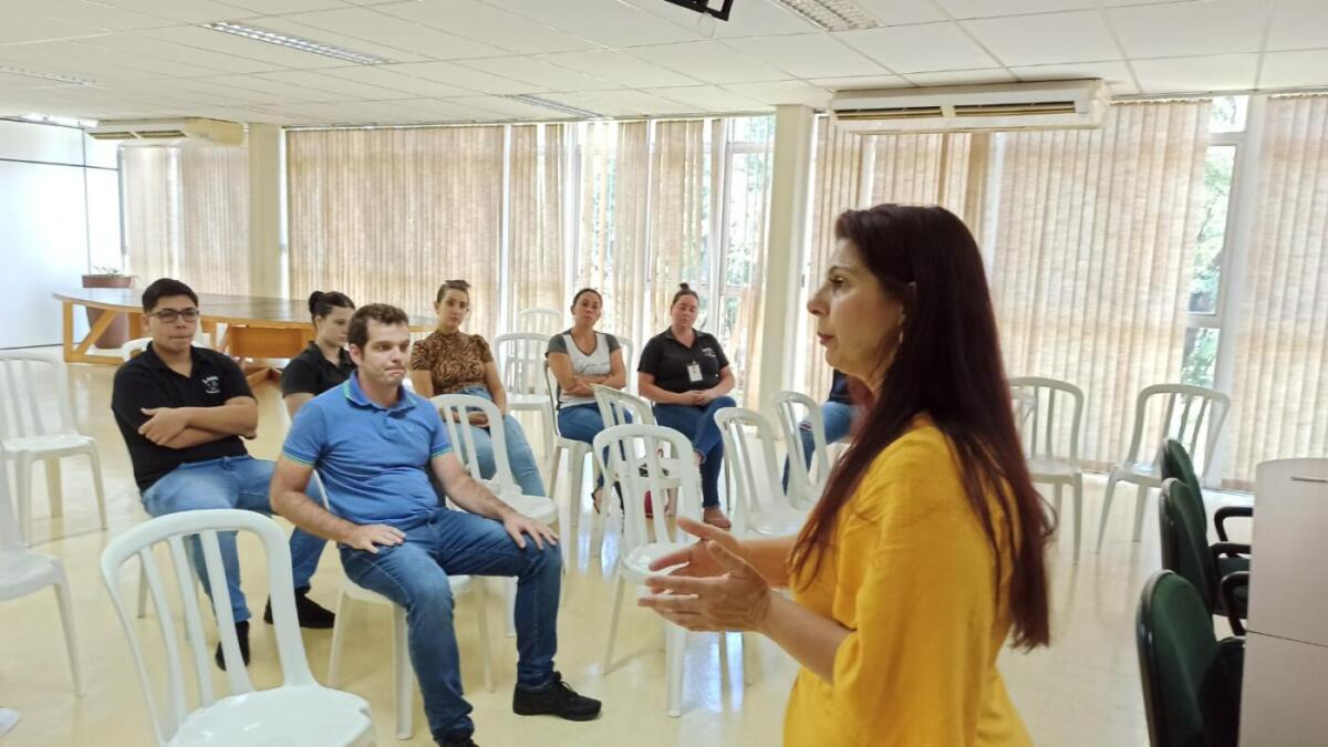 Franciele Calegari, responsável pela coordenação dos profissionais, é a ministrante da palestra. O tema está relacionado ao acolhimento, ao atendimento das necessidades e ao direcionamento seguro dos pacientes. A ação é organizada pela Secretaria Municipal de Saúde.